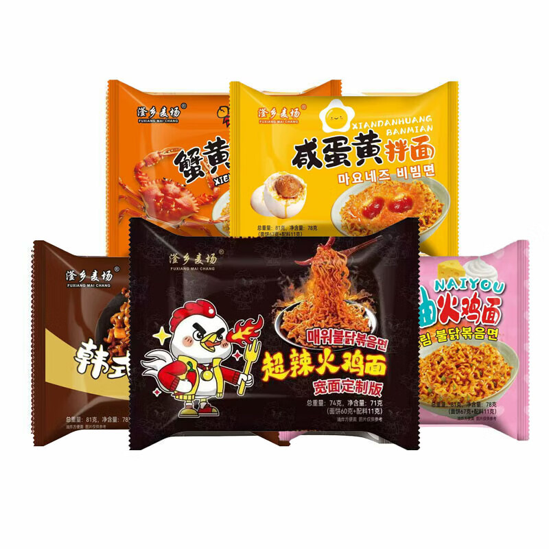 火鸡面混合口味泡面蟹黄77g芝士火鸡拌面批发整箱袋装方便面速食 5袋装【五种口味拌面】全家福