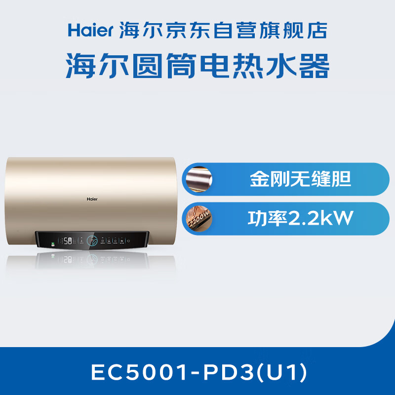 海尔(Haier)国家补贴20%电热水器50升PD3 金刚无缝胆终身免换镁棒一级能效节能省电储水式大水量家用京东自营