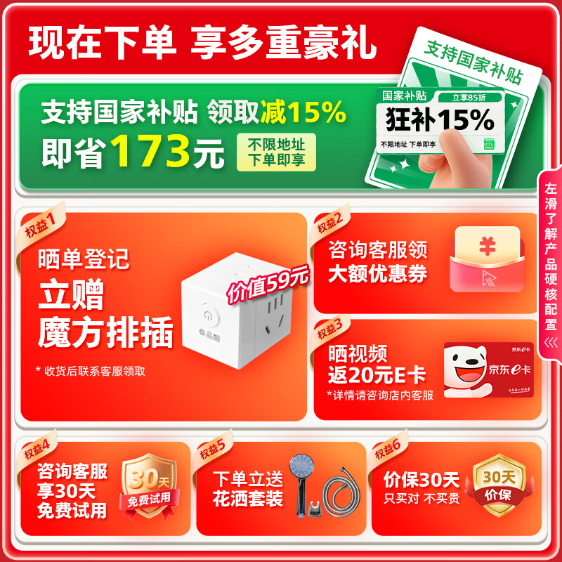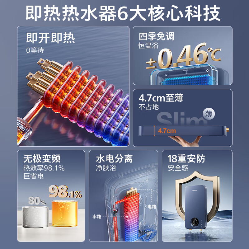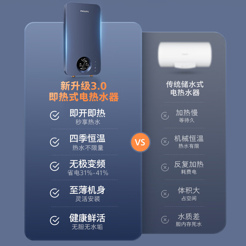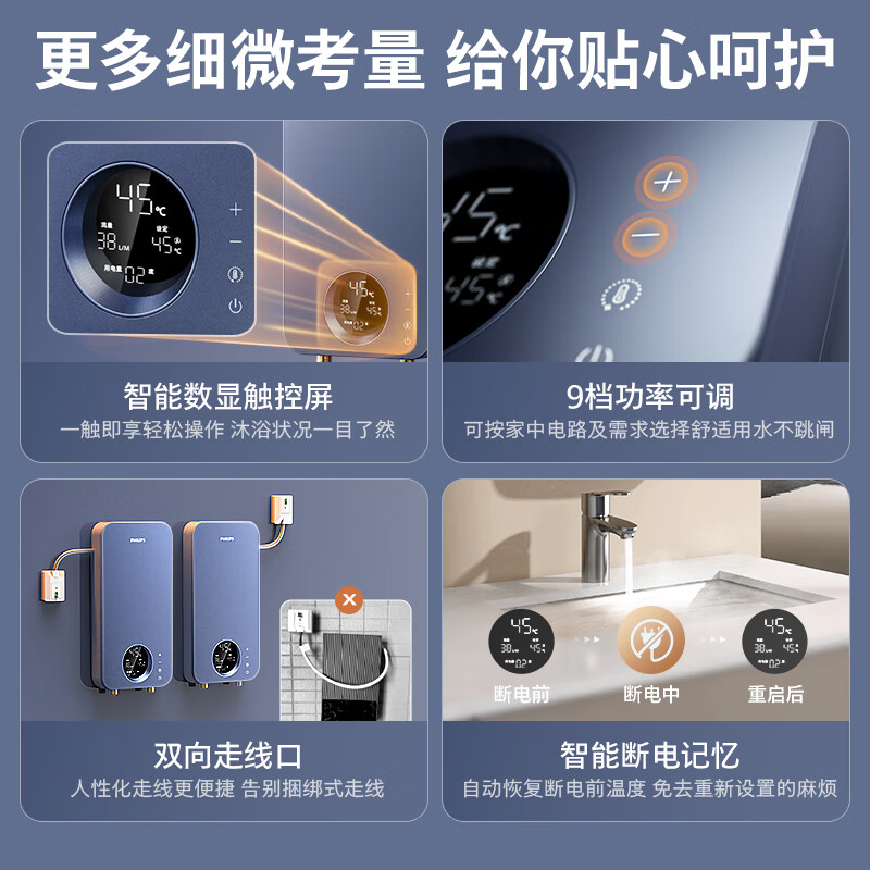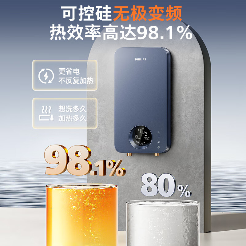 飞利浦(PHILIPS)即热式电热水器 电即热8500W速热无极变频智能恒温 国家补贴15% 无胆免储水AWH1028/93(85HB)
