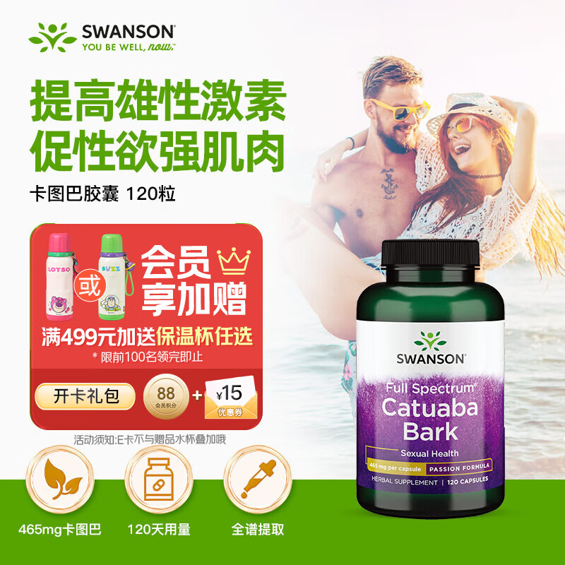 斯旺森(SWANSON)卡图巴树皮胶囊465mg*120粒 提升男荷尔蒙改善性欲提勃起缓解疲劳