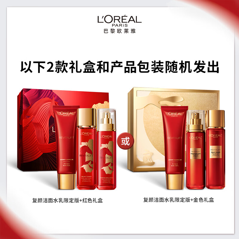 欧莱雅[李冰冰推荐]复颜洁面水乳新年礼盒套装补水护肤化妆品情人节礼物