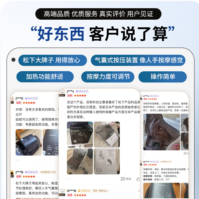 松下(Panasonic)膝盖按摩仪膝关节热敷按摩器膝部加热保暖家用全膝部礼品孝敬送父母圣诞礼物男女朋友生日RJ50