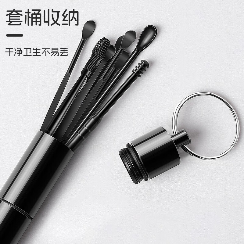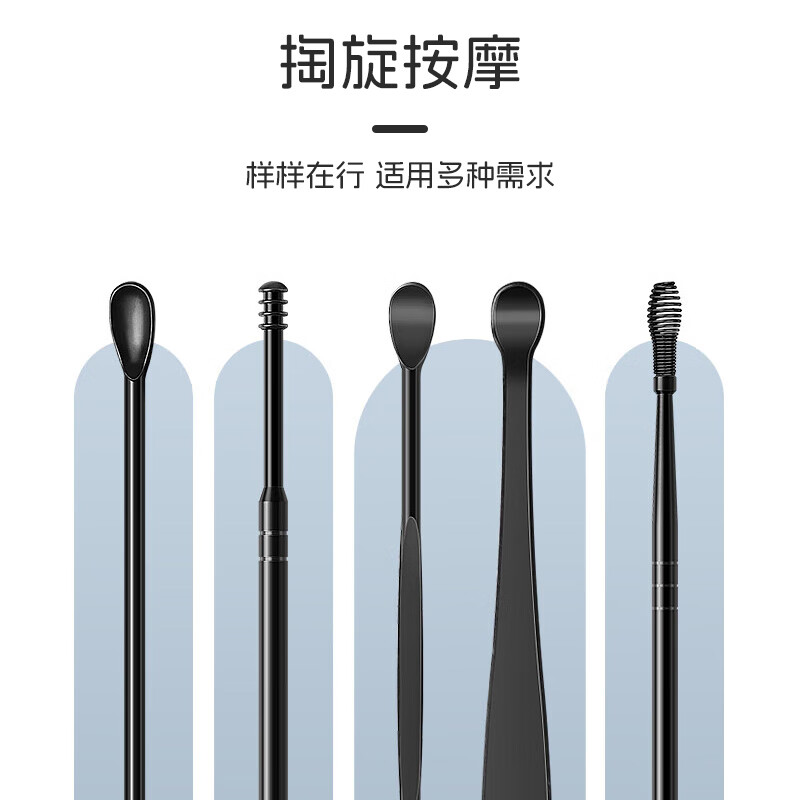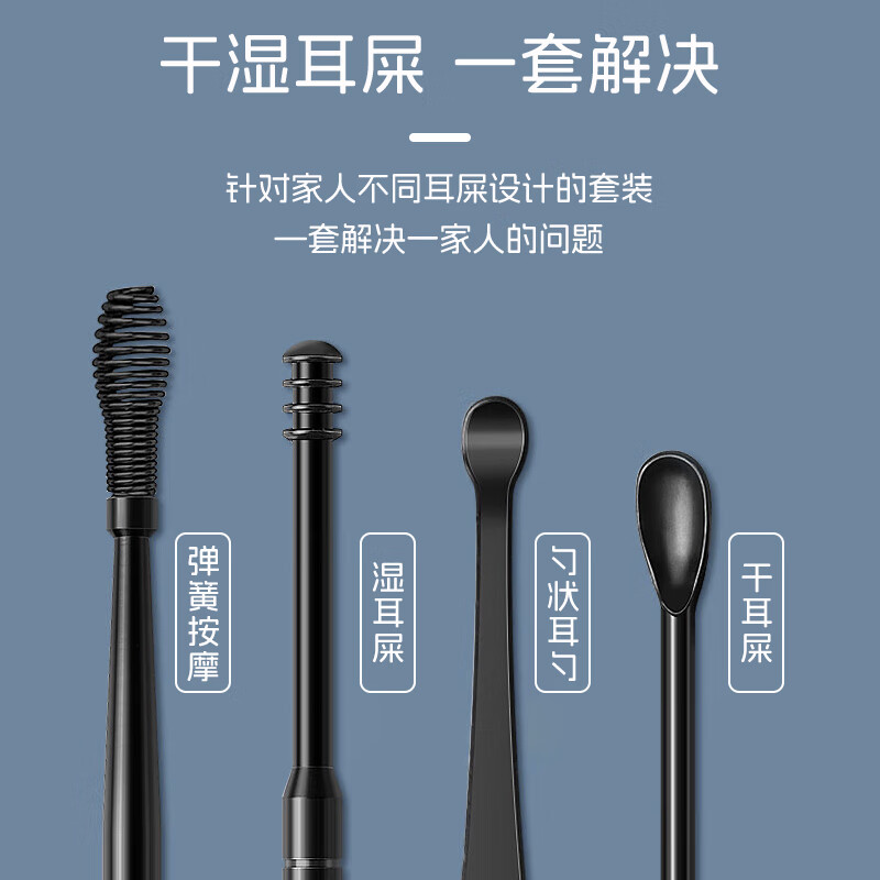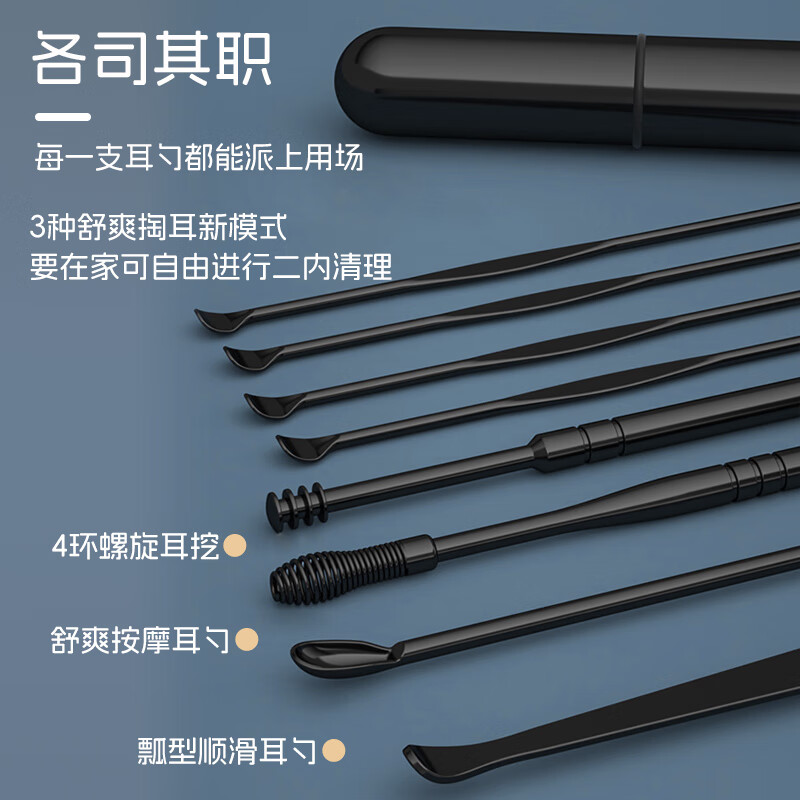 马博士 掏耳朵神器挖耳勺螺旋掏耳勺采耳工具套装便携 黑色不锈钢9件套