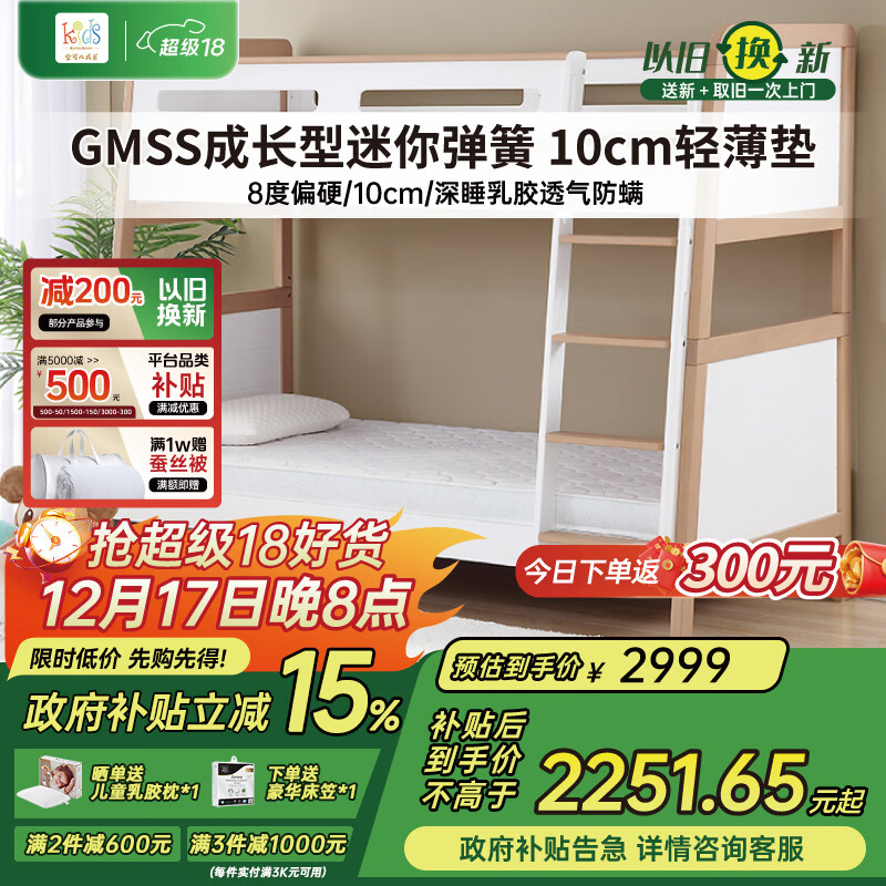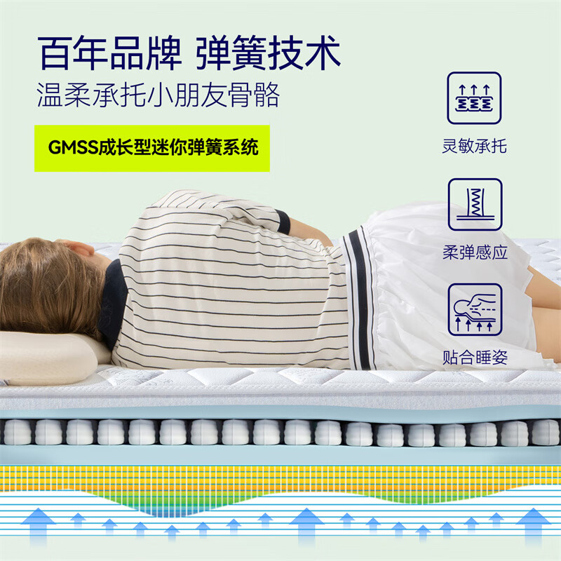 金可儿成长儿童床垫1.5米 舒脊弹簧乳胶床垫 阿斯兰 1.5*2米 偏硬