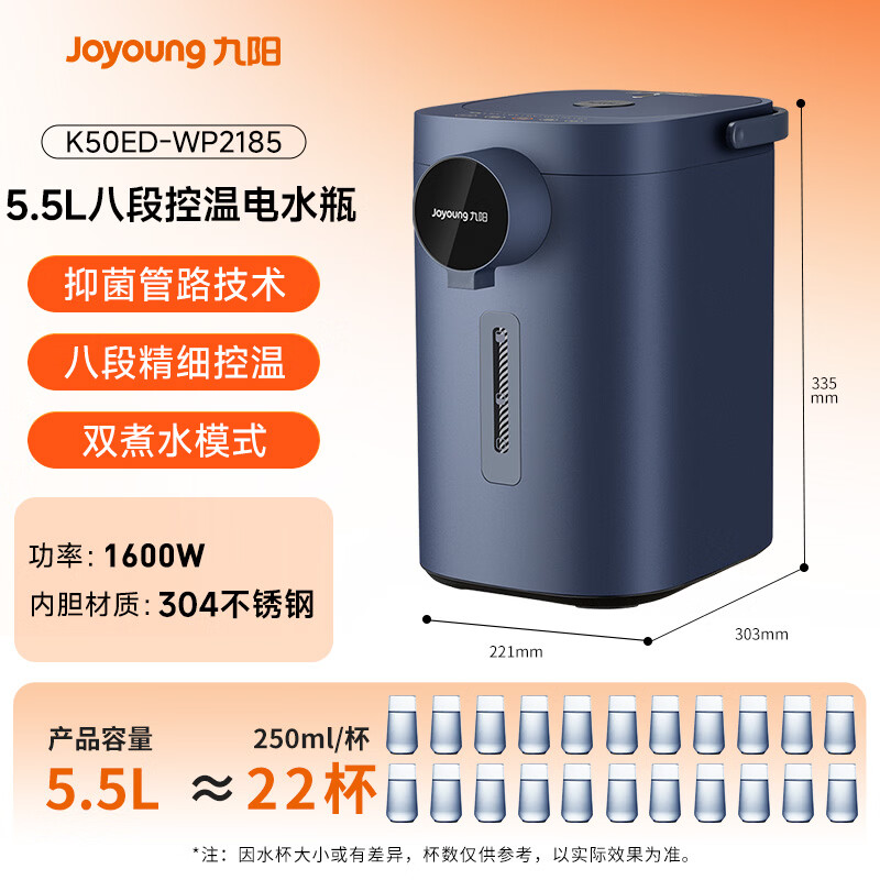 九阳(Joyoung)电热水瓶热水壶 5.5L大容量八段保温304不锈钢内胆 0胶水 恒温水壶K50ED-WP2185