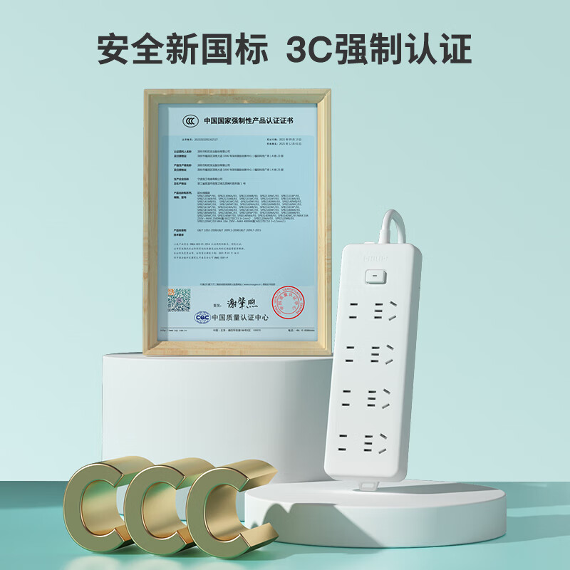 飞利浦(PHILIPS)8位组合孔2.8米 儿童保护门 插线板/插排/排插/接线板/拖线板
