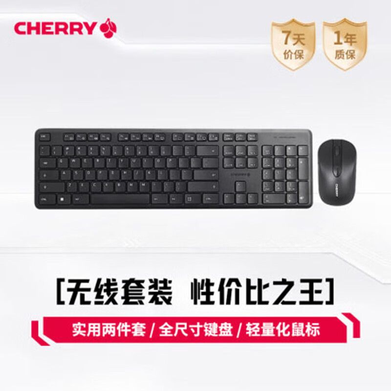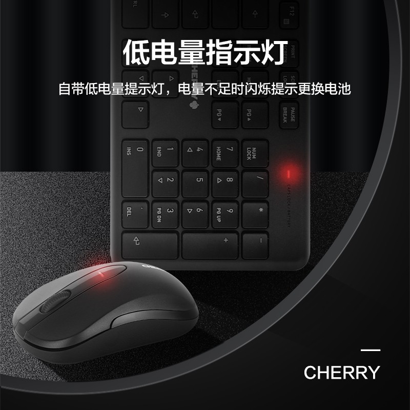 CHERRY樱桃 DW2300 无线键鼠套装 键盘鼠标二代升级版商务办公家用笔记本电脑外接全尺寸轻音便携 经典黑