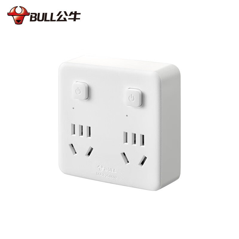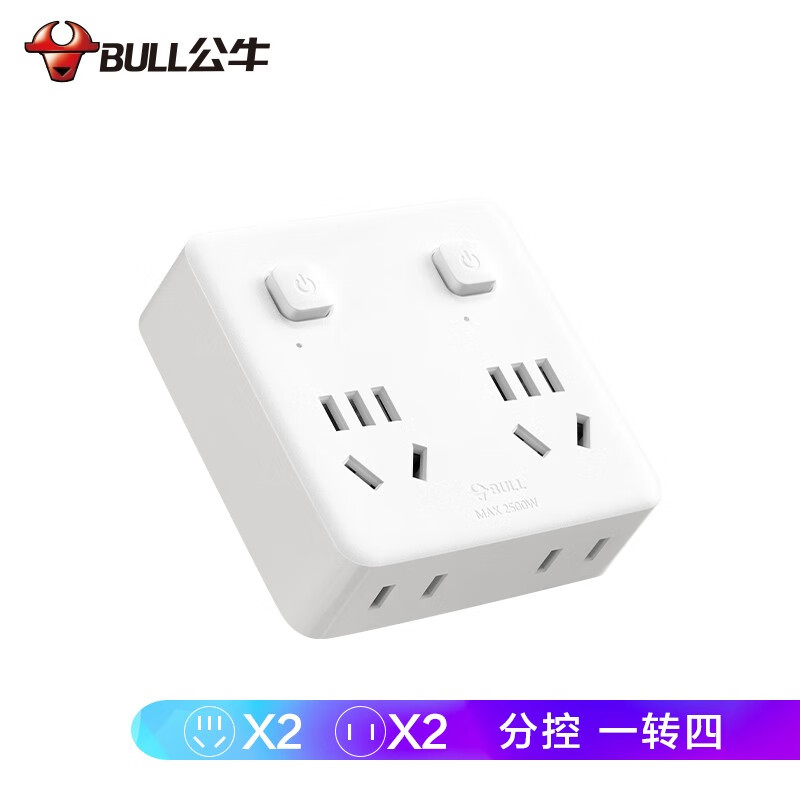 公牛(BULL)86型插座扩展器一转多/一转四插座/转换插头/转换器/插排 适用卧室、厨房 4位分控开关 GN-93223
