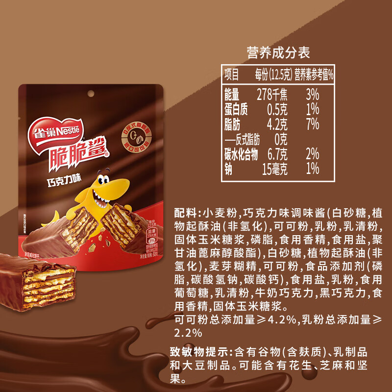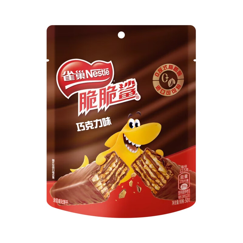 雀巢(Nestle)脆脆鲨威化饼干巧克力味50g 休闲零食办公室代餐 早餐下午茶团购