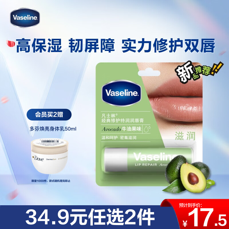 凡士林润唇膏3.5g牛油果味深层补水保湿滋养淡化唇纹礼物 有效期27年6月