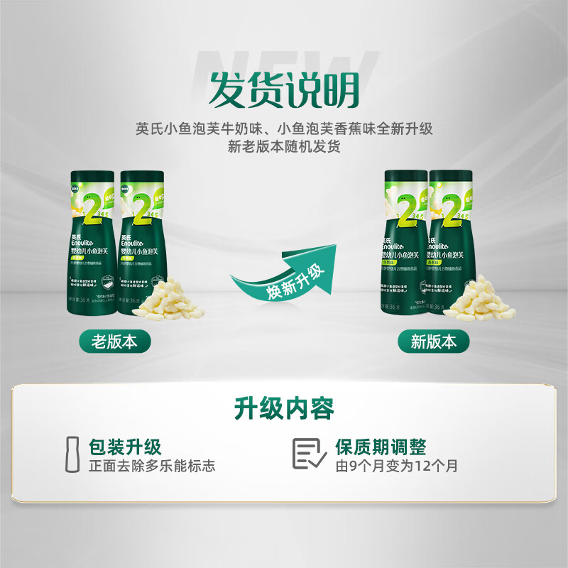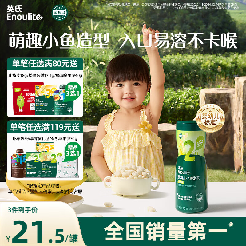 英氏(Engnice)婴幼儿泡芙香蕉味 婴儿零食宝宝儿童零食泡芙小鱼泡芙条罐装36g