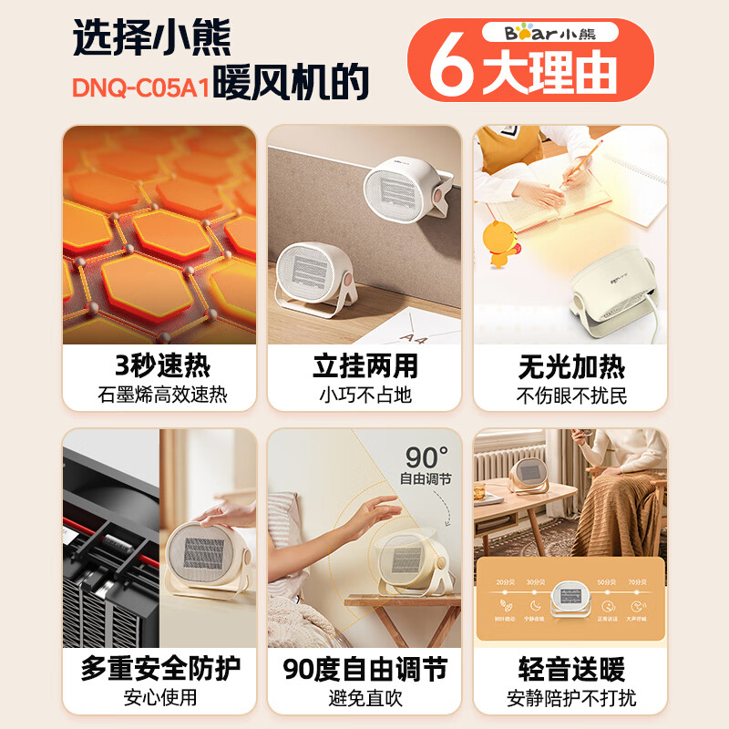 小熊(Bear)取暖器暖风机办公室电暖器家用电暖气小型电暖风迷你热风机学生桌面取暖电器卧室伴侣DNQ-C05A1