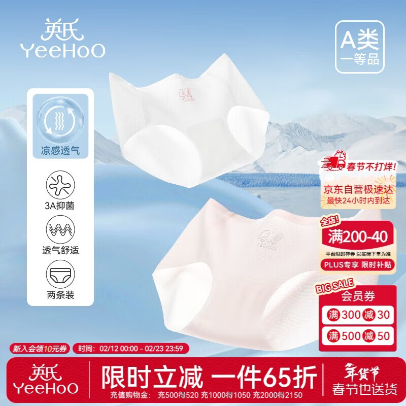 英氏(YEEHOO)儿童内裤女童三角冰丝夏季薄款网眼抑菌透气无痕两条装不夹PP