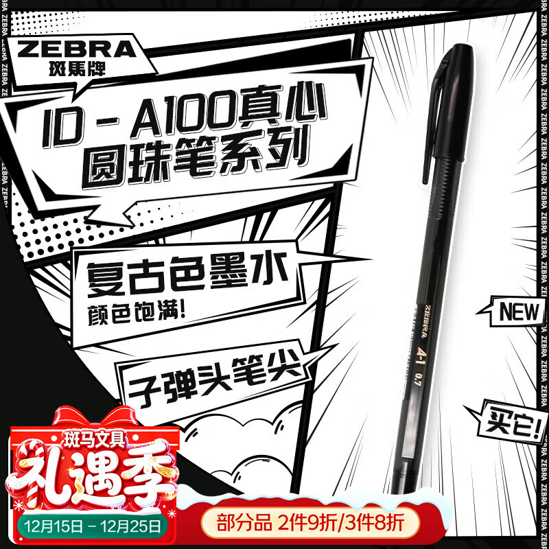 斑马牌(ZEBRA)【热门商品】真心圆珠笔系列 0.7mm子弹头原子笔学生办公用中油笔 ID-A100 黑色