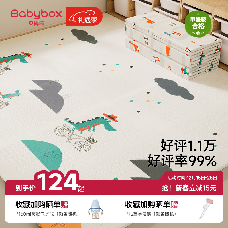贝博氏babybox爬爬垫婴儿宝宝爬行垫XPE加厚双面可折叠地垫200*180*2cm