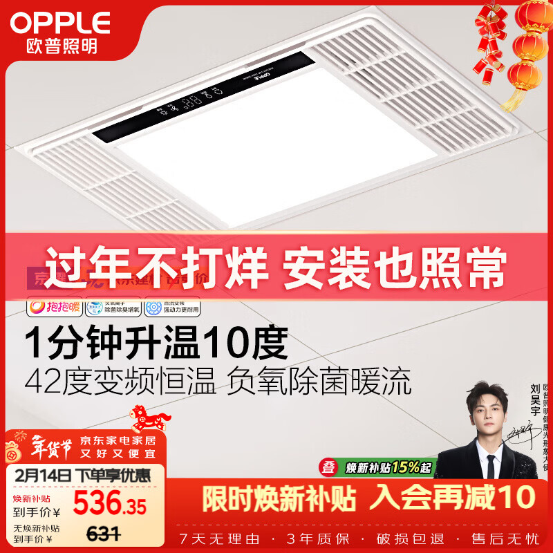 欧普照明(OPPLE)京东集采风暖浴霸 京系列 抱抱暖变频恒温除菌浴霸 京耀