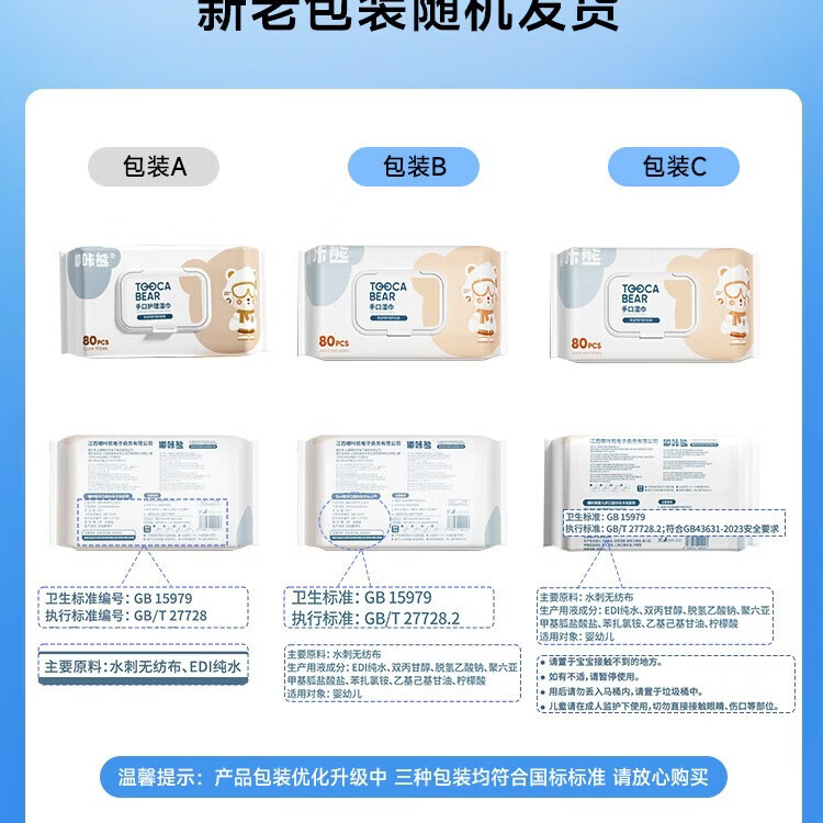 嘟咔熊湿巾 80抽*10包马卡龙 珍珠纹婴儿湿巾纸 宝宝手口湿巾儿童湿纸巾