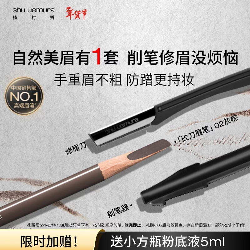 植村秀经典砍刀眉笔灰棕02 百搭防水防汗自然显色 情人节礼物 女友 男友