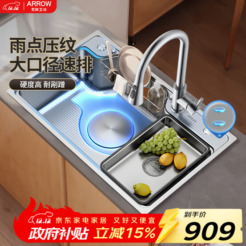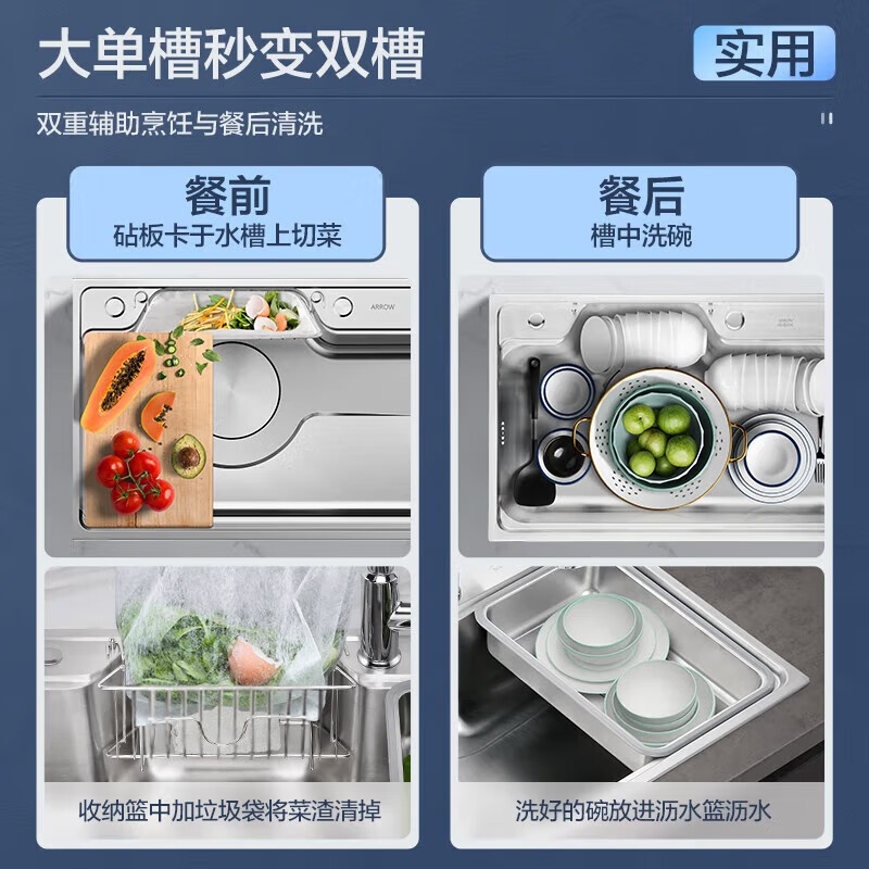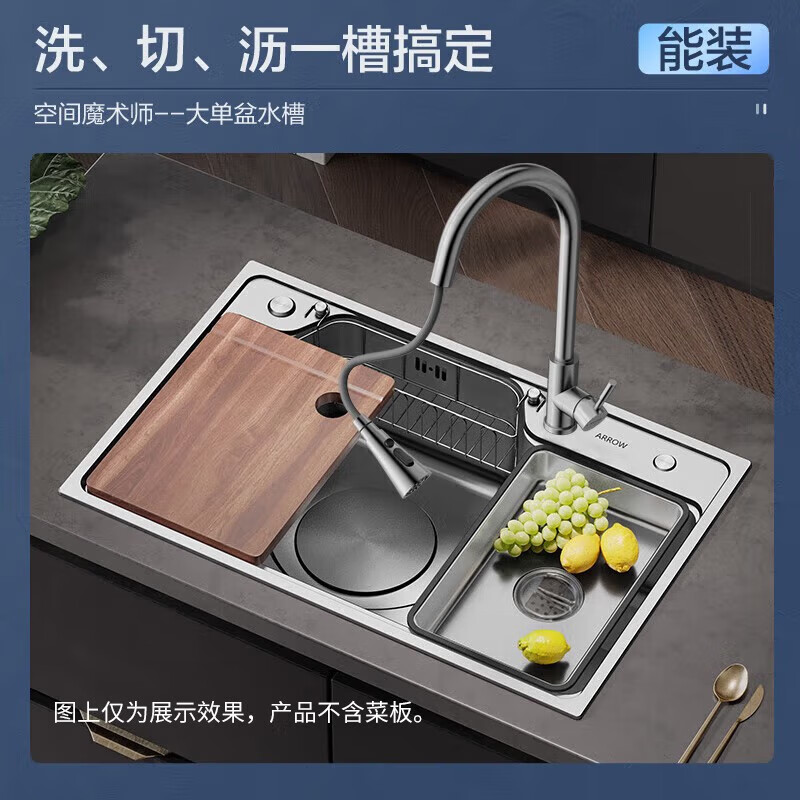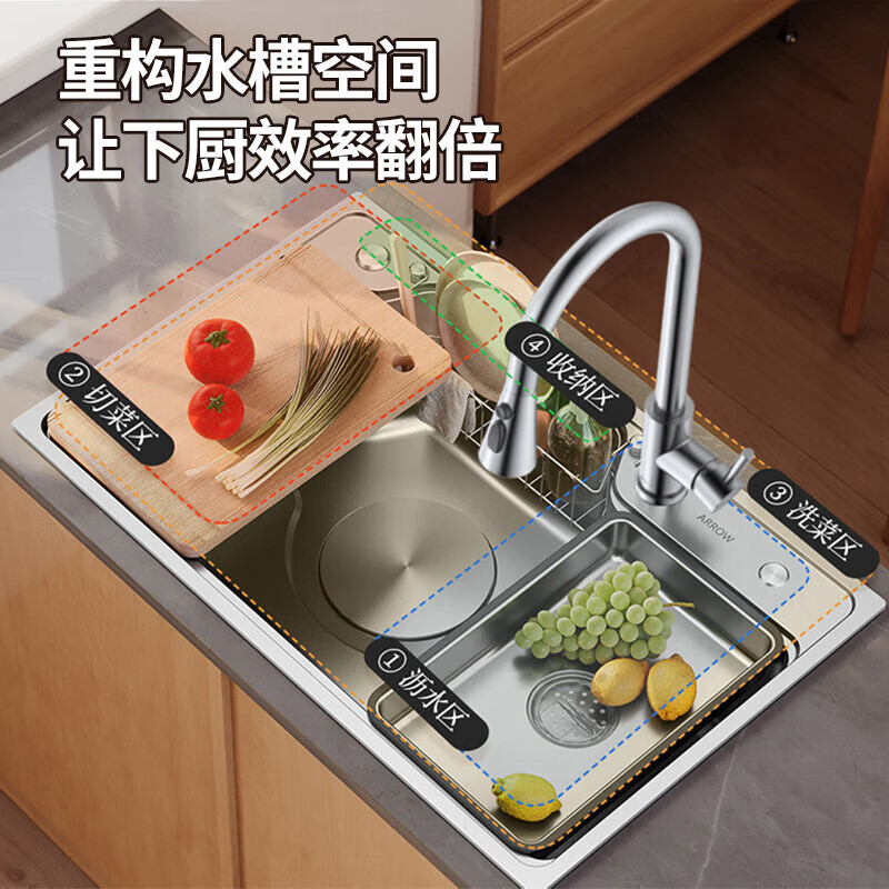 箭牌(ARROW)水槽厨房洗菜盆不锈钢家用日式大单槽AE5575452G23-YSS·75*48