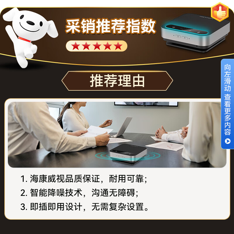 HIKVISION海康威视全向麦克风USB免驱无线蓝牙3米拾音360°收音桌面扬声器10~20㎡视频会议解决方案 升级款