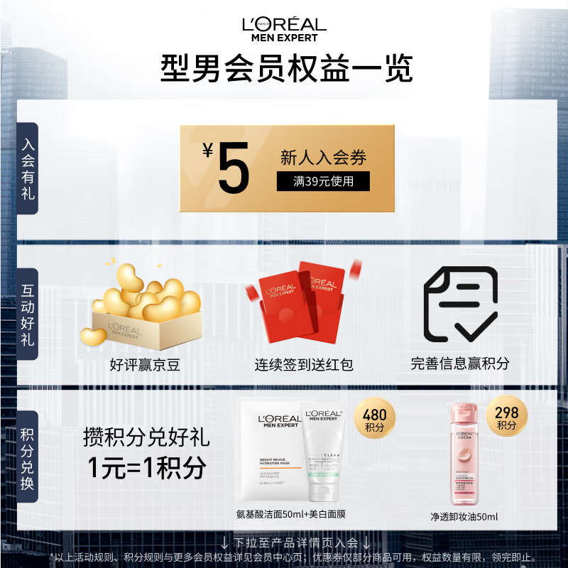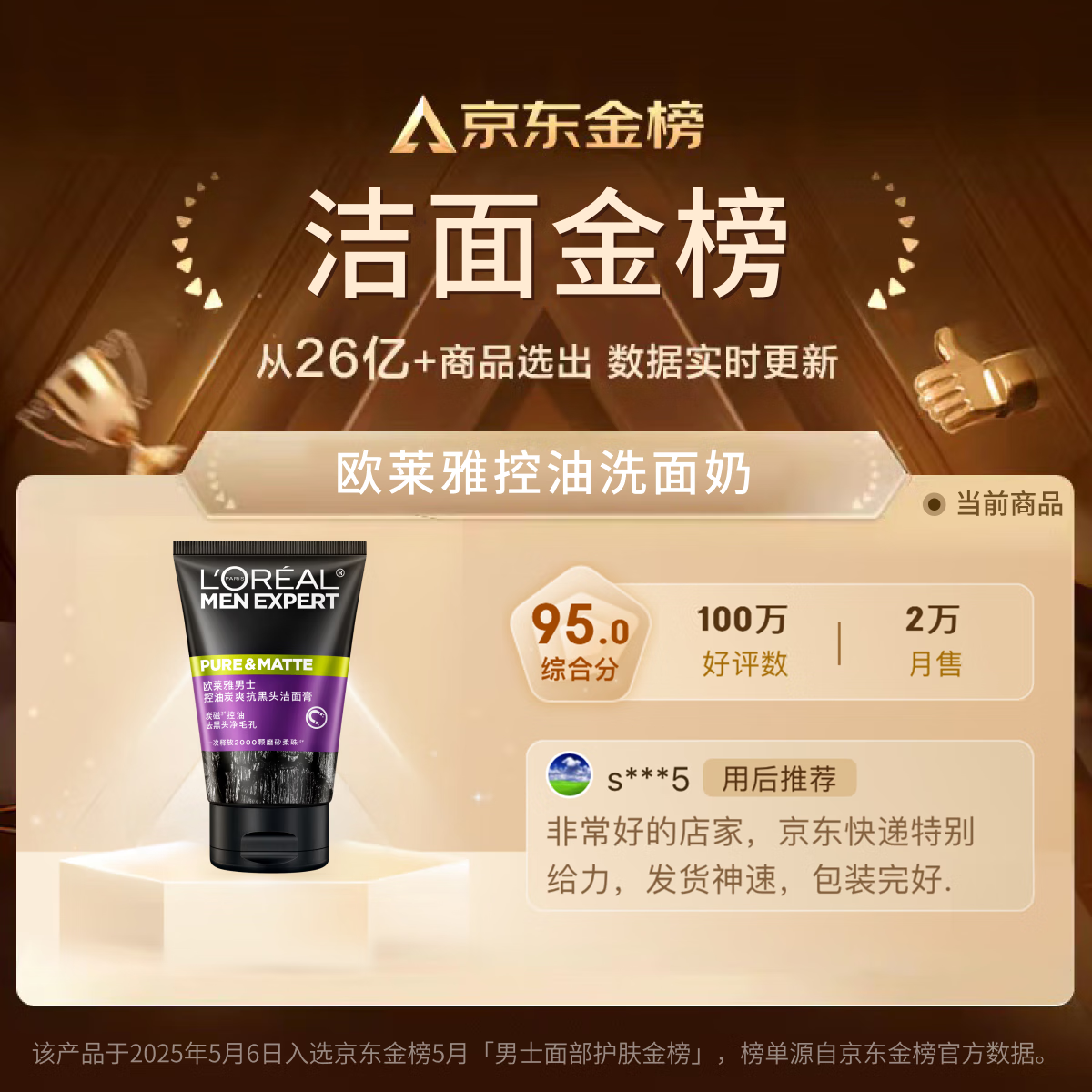 欧莱雅男士专用控油去黑头洁面乳膏100ml祛痘去角质净毛孔洗面奶护肤品