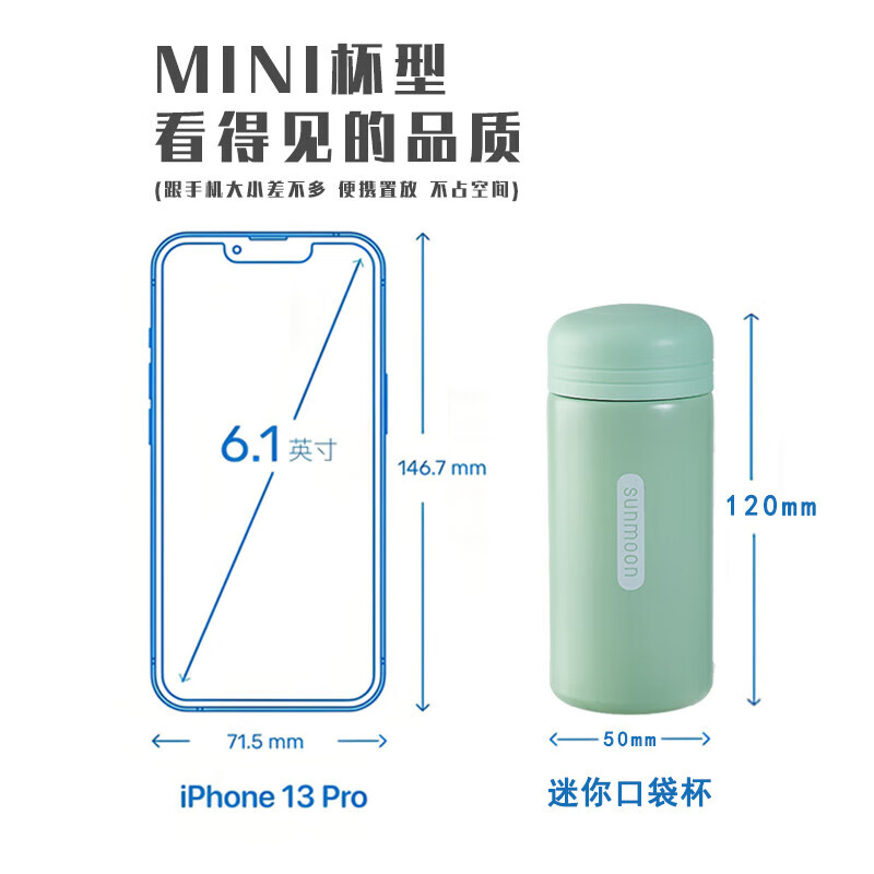 【全网爆款】迷你口袋保温杯304不锈钢水杯便携可爱水杯女生 淡青色 150ml