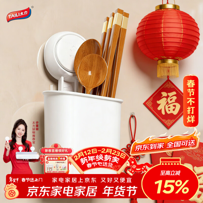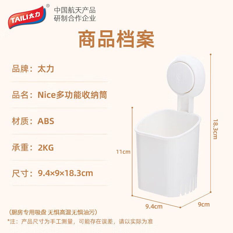 太力吸盘筷子收纳盒沥水筷子筒 厨房置物架筷笼吸盘壁挂1个装