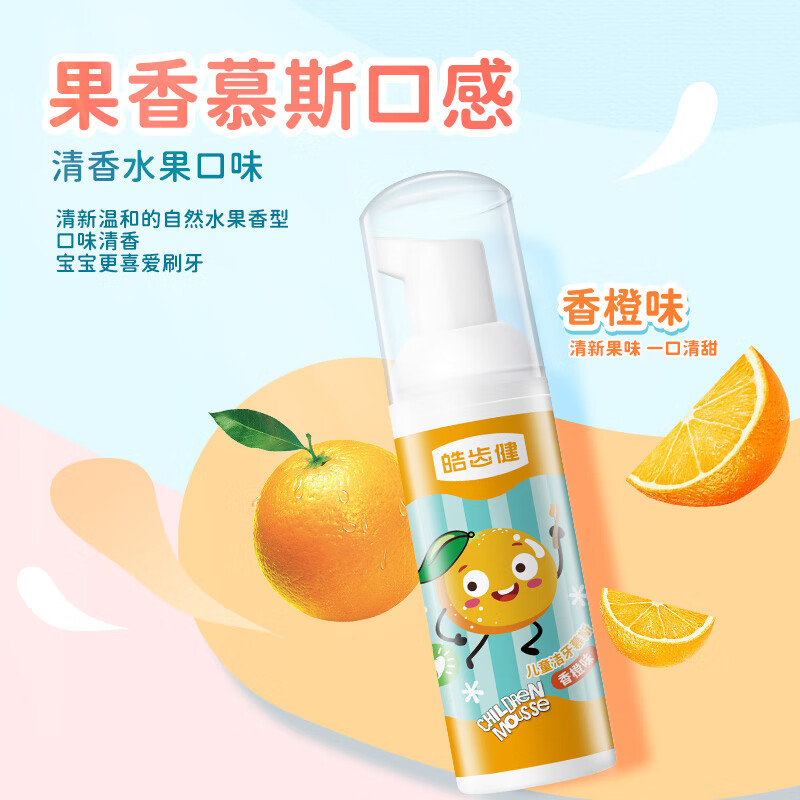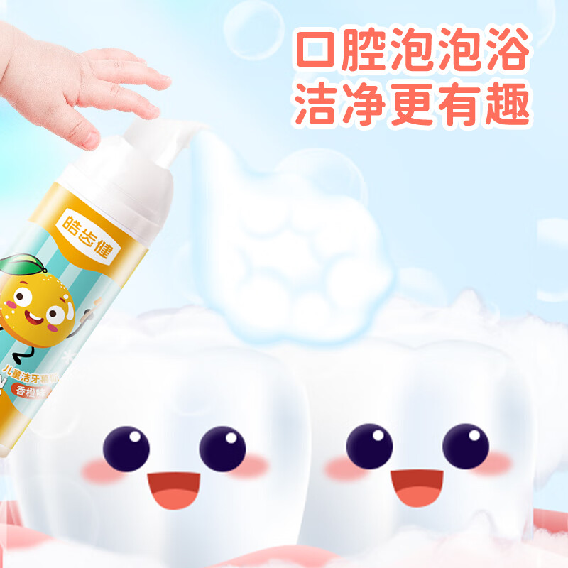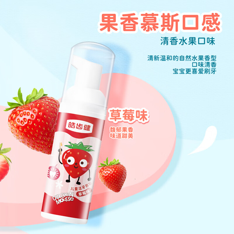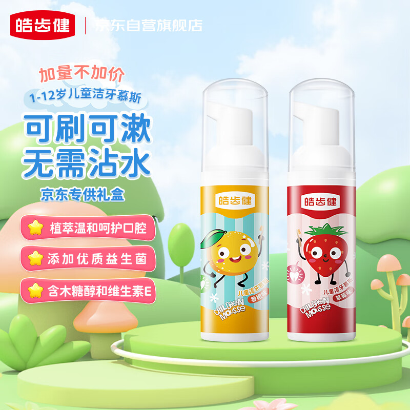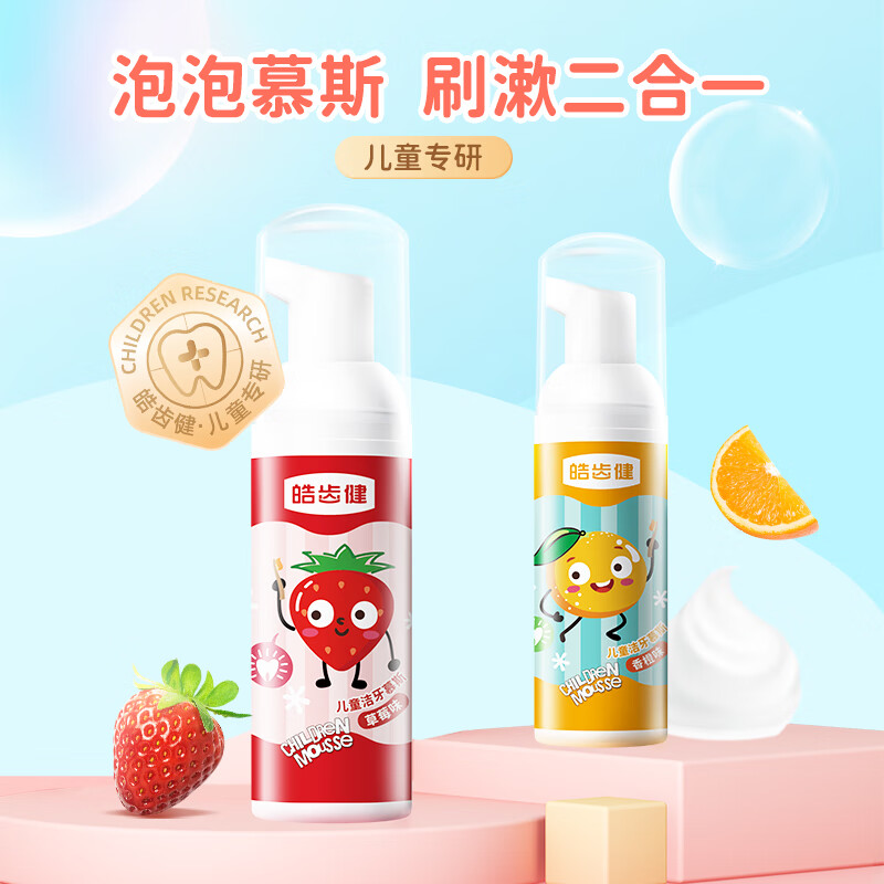 皓齿健1-12岁儿童宝宝益生菌可刷可漱洁牙慕斯泡泡套装草莓香橙味共120g