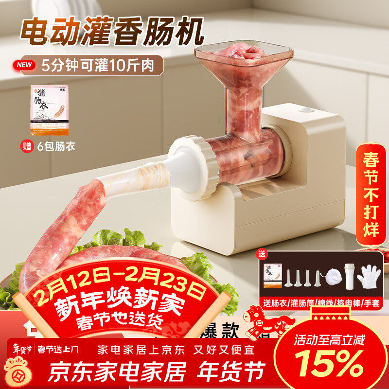 德明电动按压式灌肠机手动家用全自动罐肉肠腊肠肠衣工具香肠机