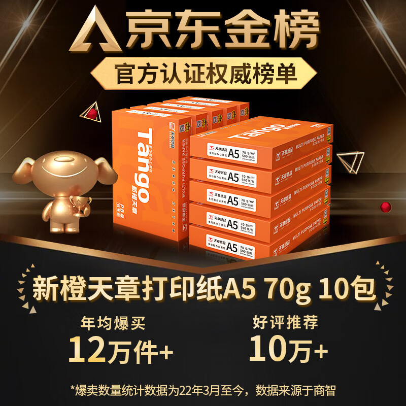 天章 (TANGO)新橙天章A5打印纸70g500张*10包 数电发票 电子发票 门诊处方笺空白打印 整箱5000张(148*210mm)