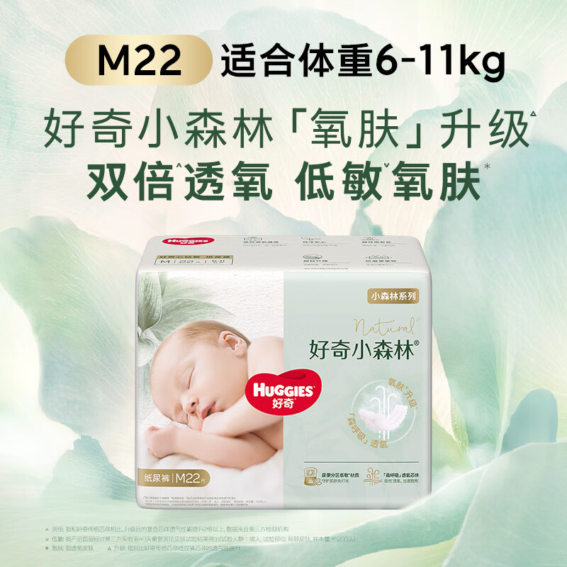 好奇(Huggies)小森林纸尿裤M22片(6-11kg)尿不湿心钻【透氧顶配更低敏】