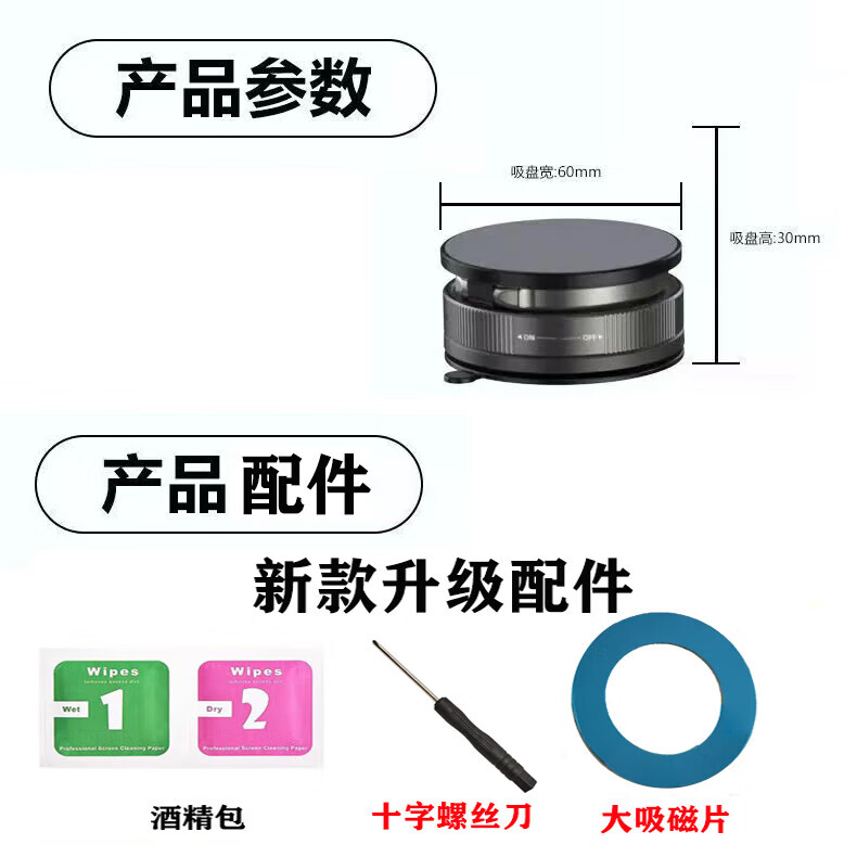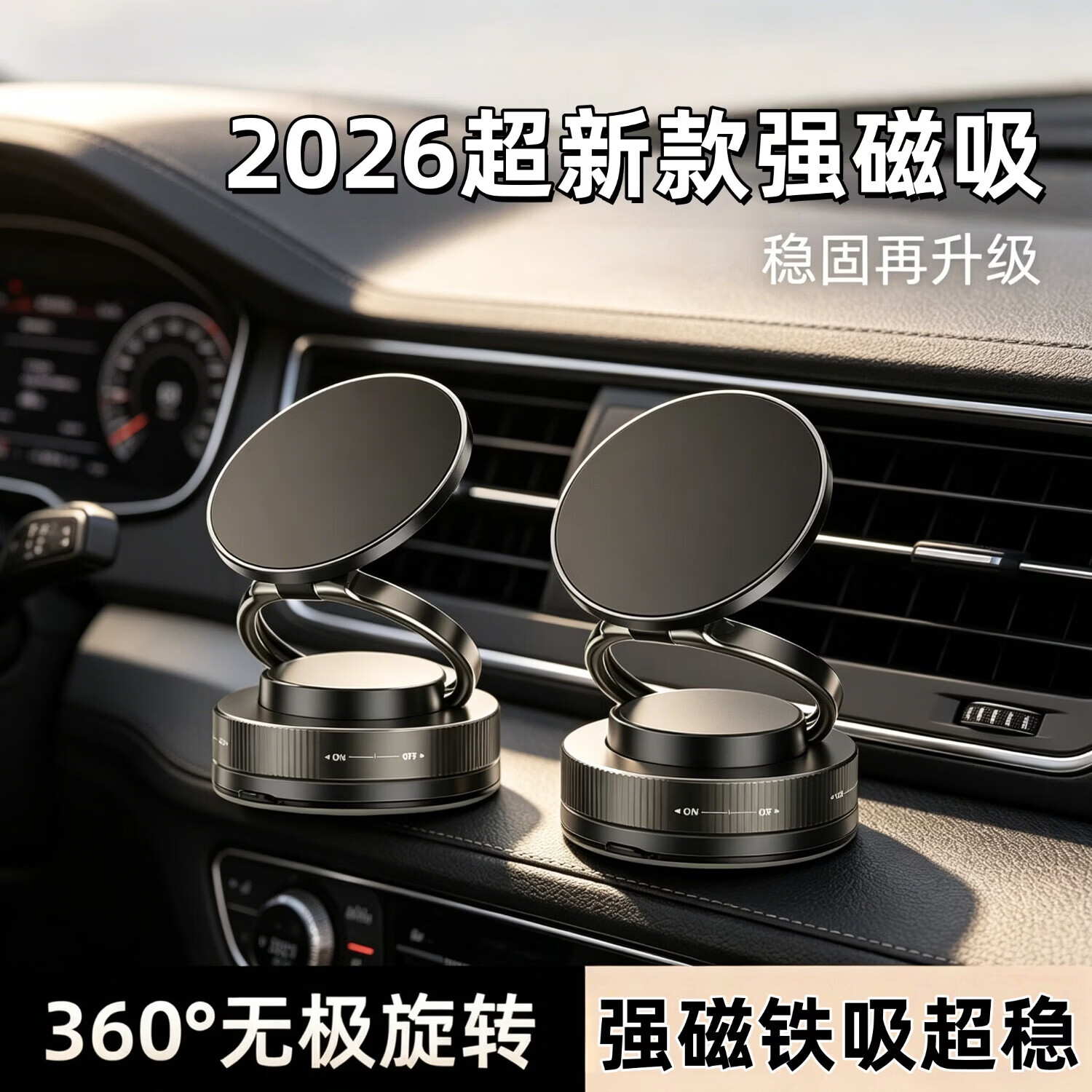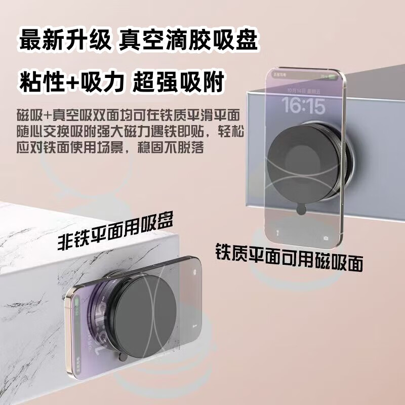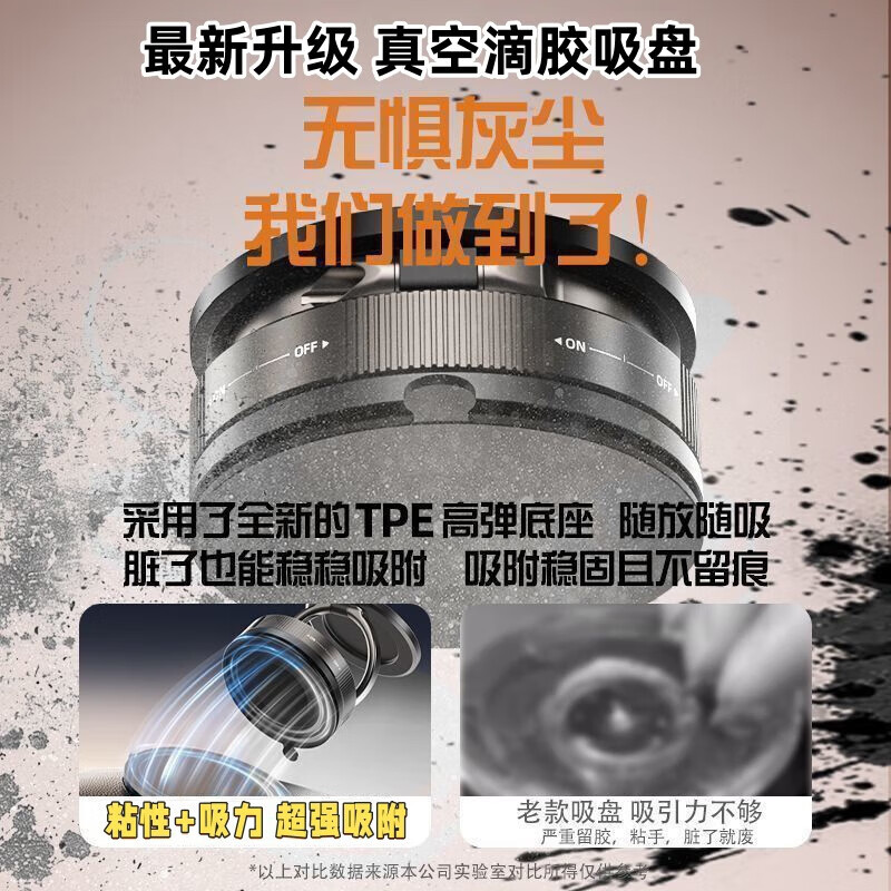 【包邮】2025新款真空滴胶吸盘磁吸手机支架多功能车载中控台防抖导航车内专用 黑色-标配塑料环款