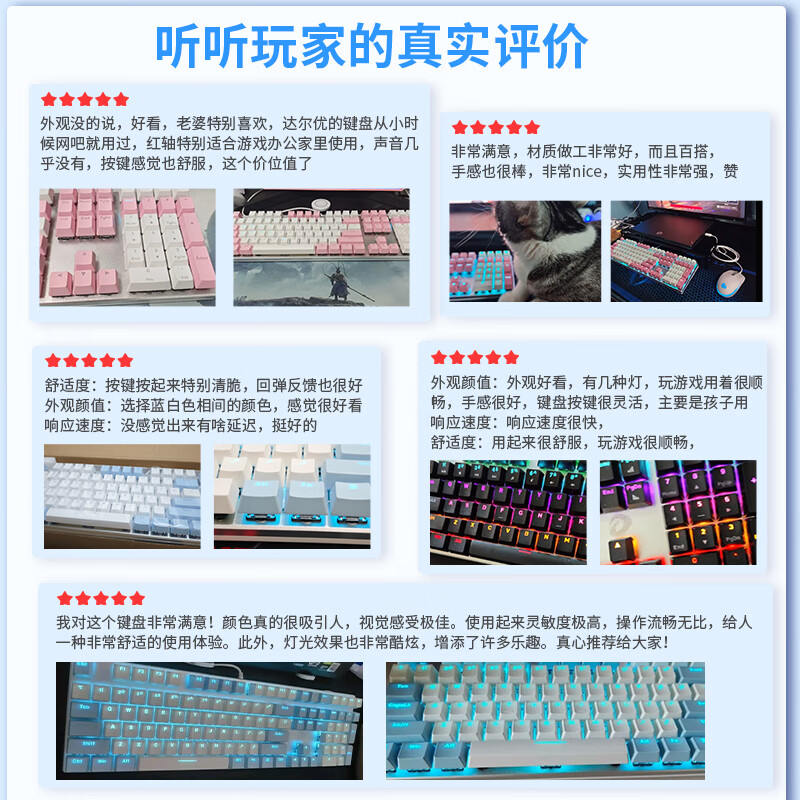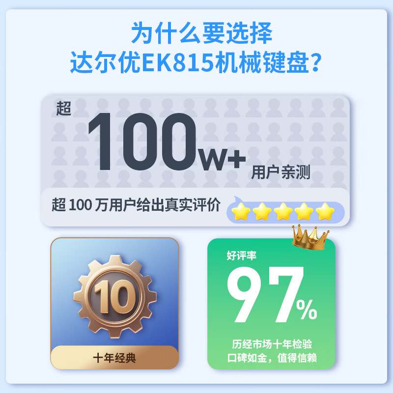 达尔优(dareu)EK815机械合金键盘 有线键盘 游戏键盘 108键单光 男生女生 电脑键盘 白色蓝色 青轴