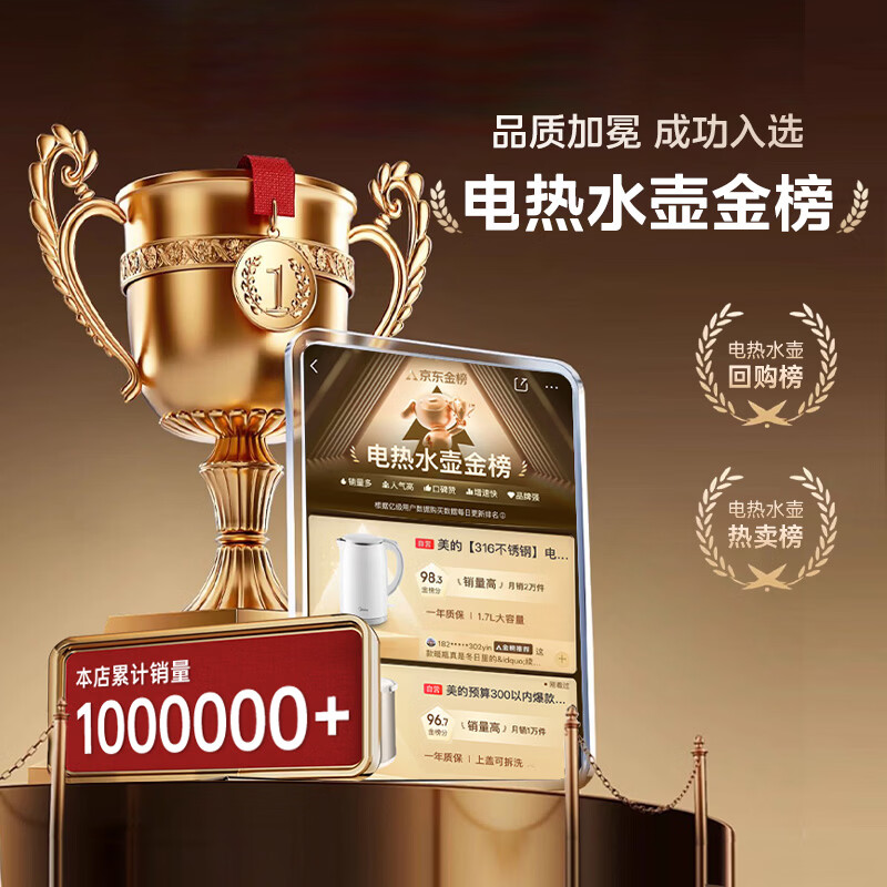 美的(Midea)电热水壶养生母婴级316L内胆双层无缝一体家用烧水壶1.7L大容量自动智能断电泡茶 SH17M301PRO