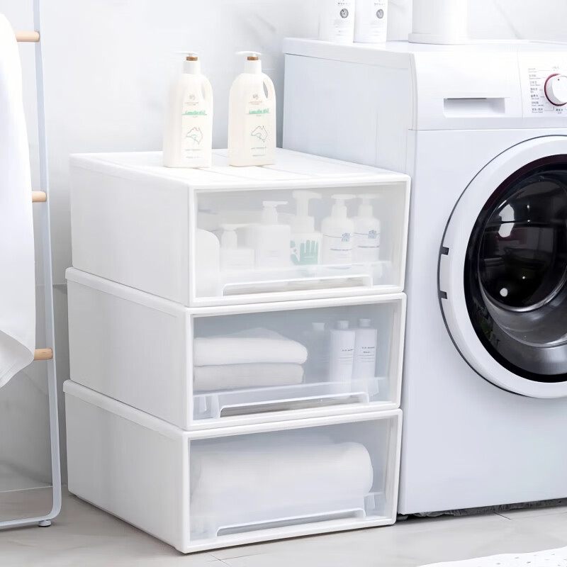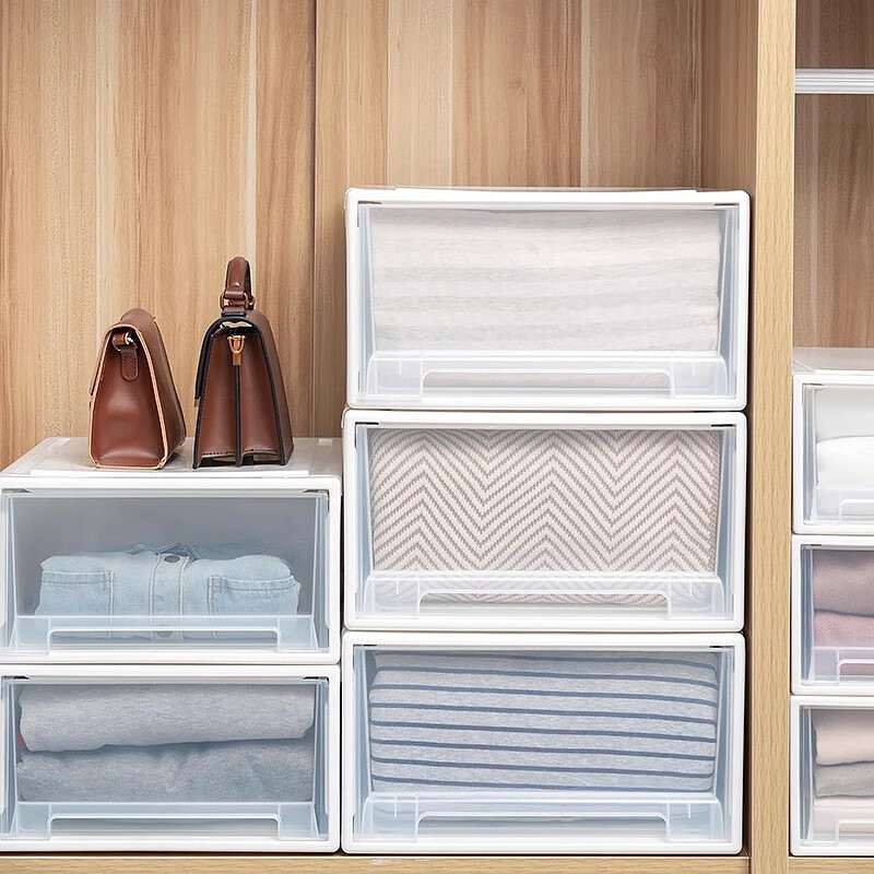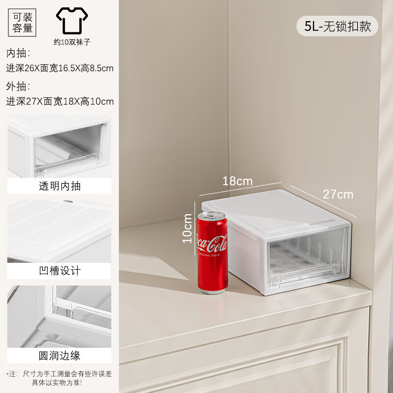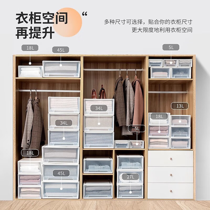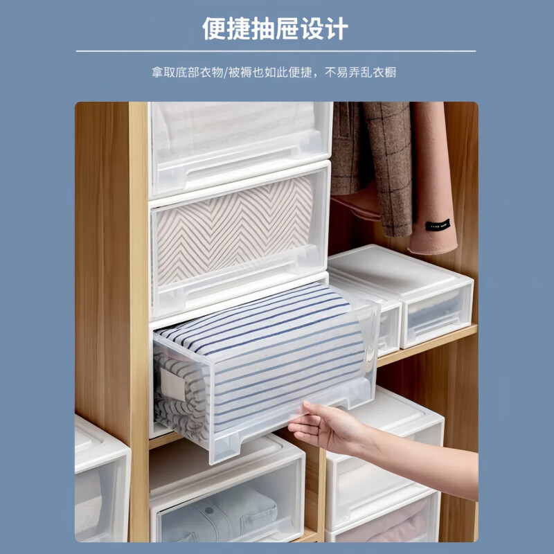 抽屉式收纳箱塑料透明衣柜收纳盒衣物储物柜子衣服收纳神器整理箱 27*18*10cm 【5L】 白色透明/一个装