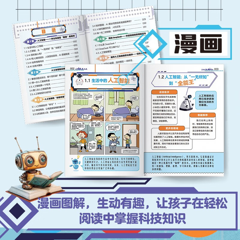 漫画人工智能AI入门 DeepSeek助力孩子ai伴学新科技趣味百科启蒙 儿童科普小学生秒懂未来科技孩子超喜欢的课外阅读