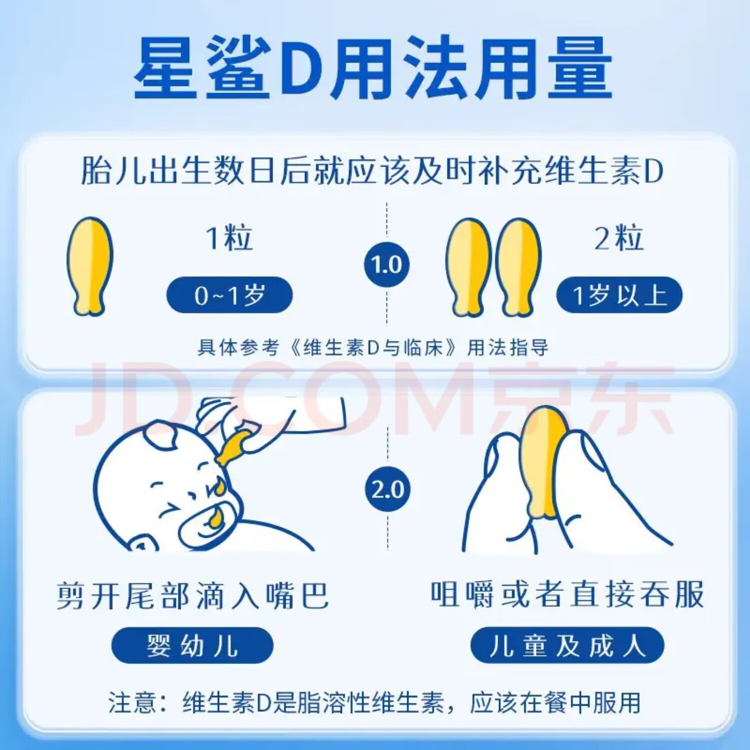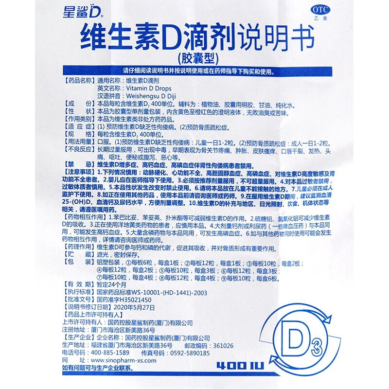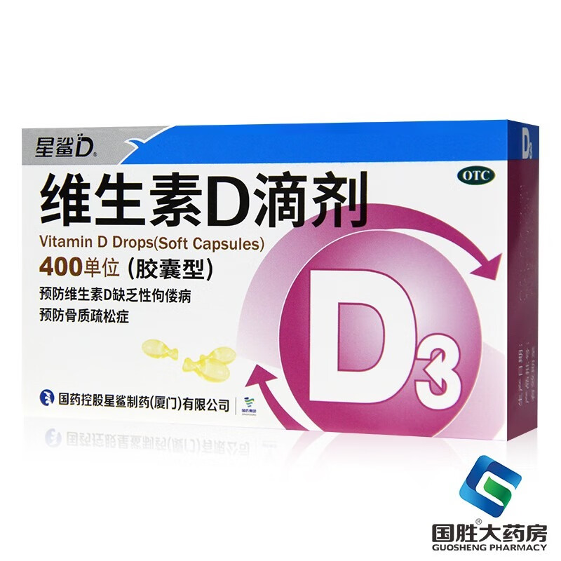 [星鲨]维生素D滴剂 400IU*36粒 1盒装 d3星鲨婴儿童成人维生素d 预防骨质疏松 佝偻病