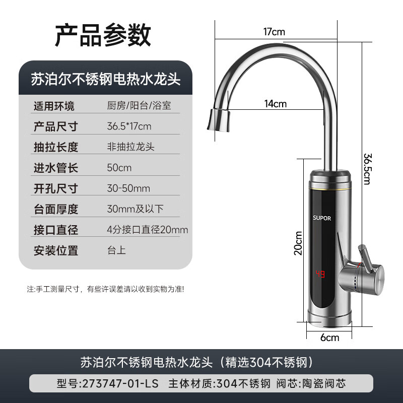 苏泊尔(SUPOR) 不锈钢即热式电热水龙头冷热两用可调节厨房阳台快速电热水器R1