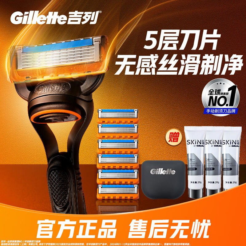 吉列剃须刀手动 锋隐基础 刮胡刀手动 男士实用礼物 5层刀片 1刀架7刀头 非吉利