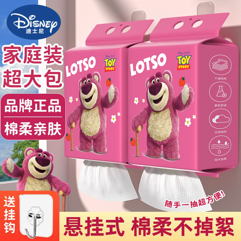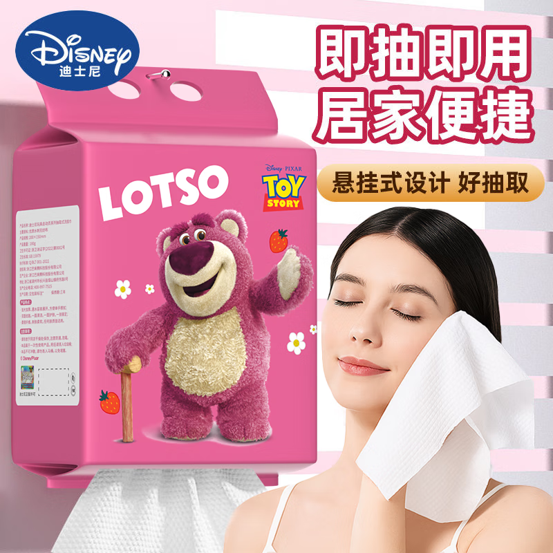 迪士尼正版授权一次性悬挂式洗脸巾加厚绵柔巾干湿两用 【超大包家庭装】 100抽*1提