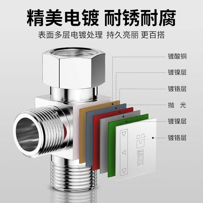 海立铜加厚三通活接头角阀龙头分水器一进二出上给水管四4分口三通28T