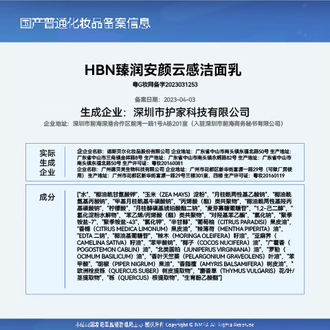 HBN洗面奶三重氨基酸表活男女洁面乳敏感肌保湿护肤100g*2生日送礼