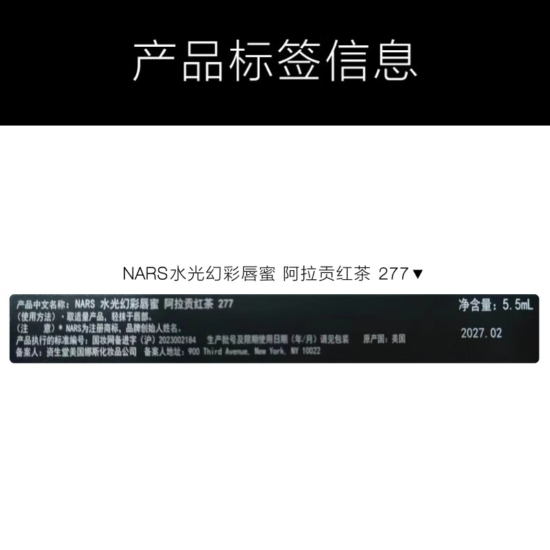NARS小粉金唇蜜#277阿拉贡 5.5ml 玻璃唇釉 口红水光镜面 生日礼物