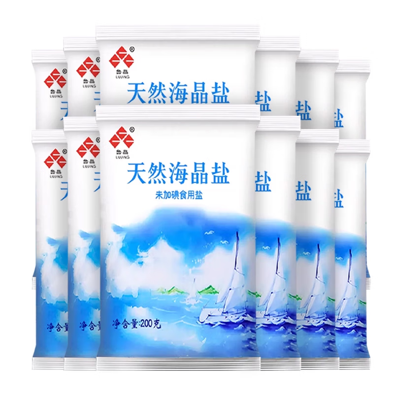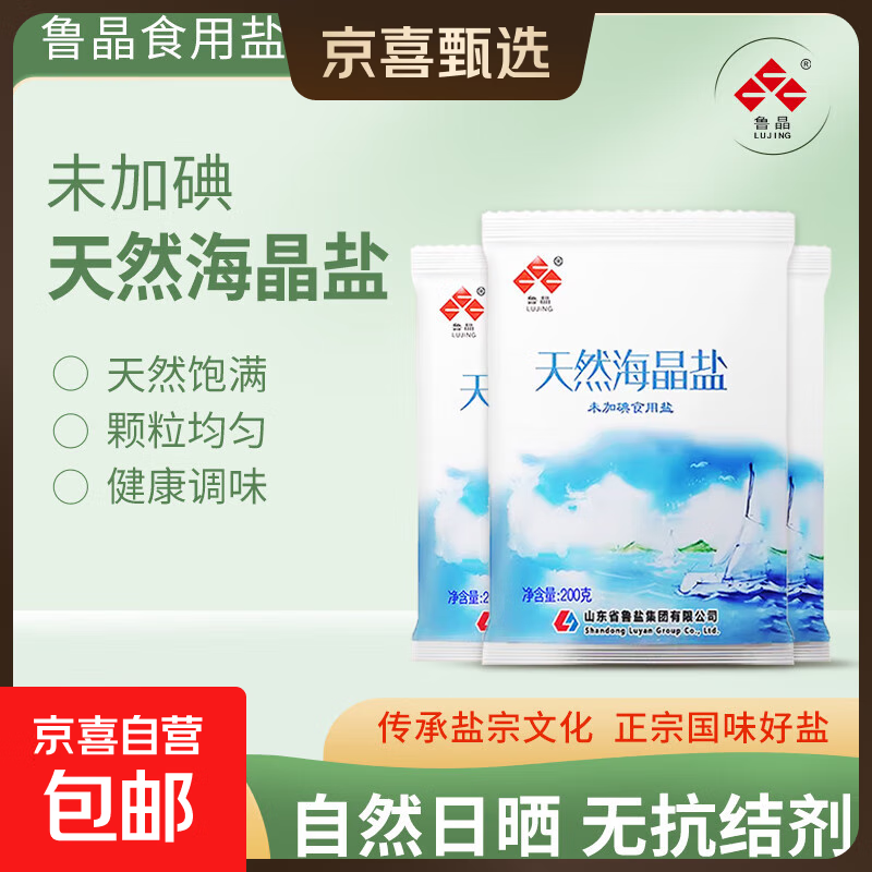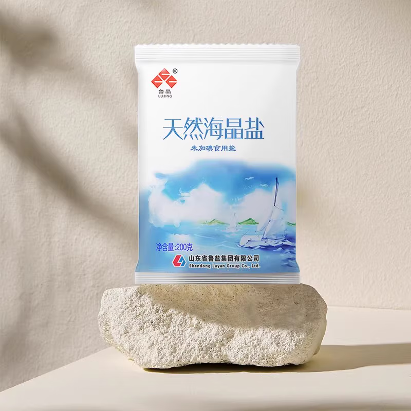 鲁晶天然海晶盐无碘精制盐调味品200g/袋未加碘盐巴炒菜食盐炖汤 【活动】200g*4包