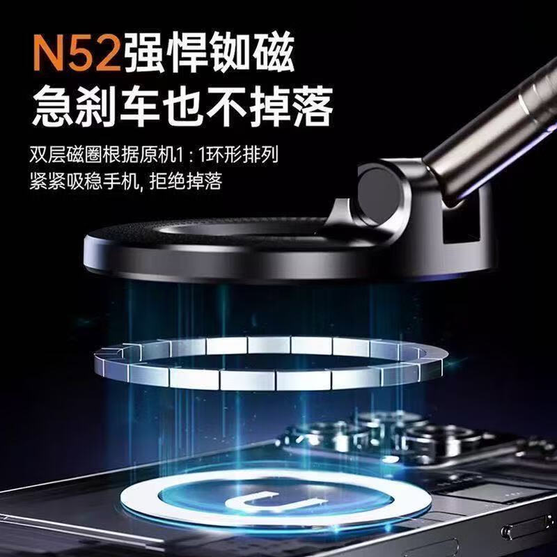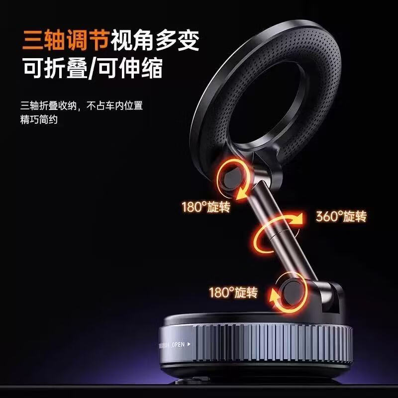 【包邮】2025新款真空滴胶吸盘磁吸手机支架多功能车载中控台防抖导航车内专用 黑色-高配款