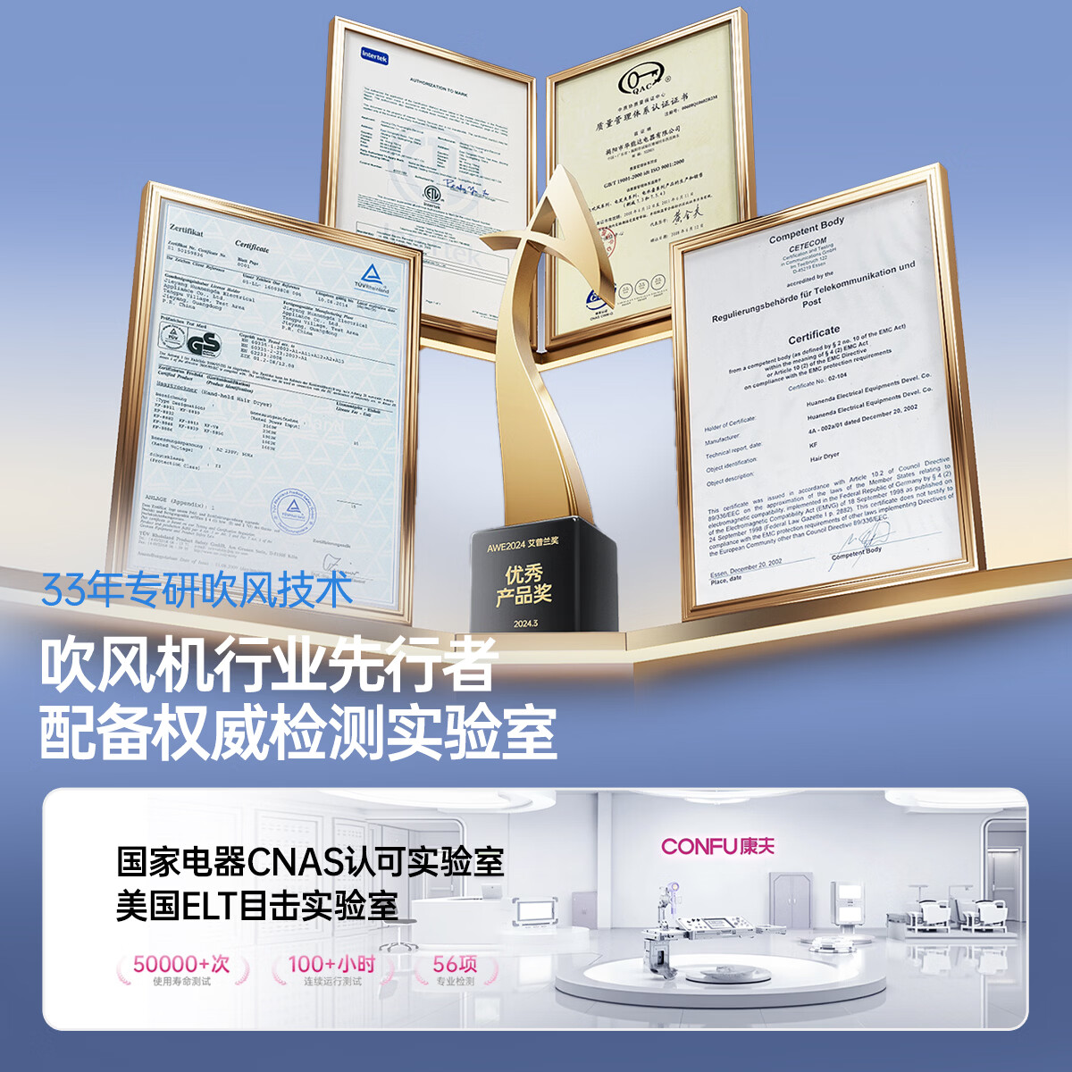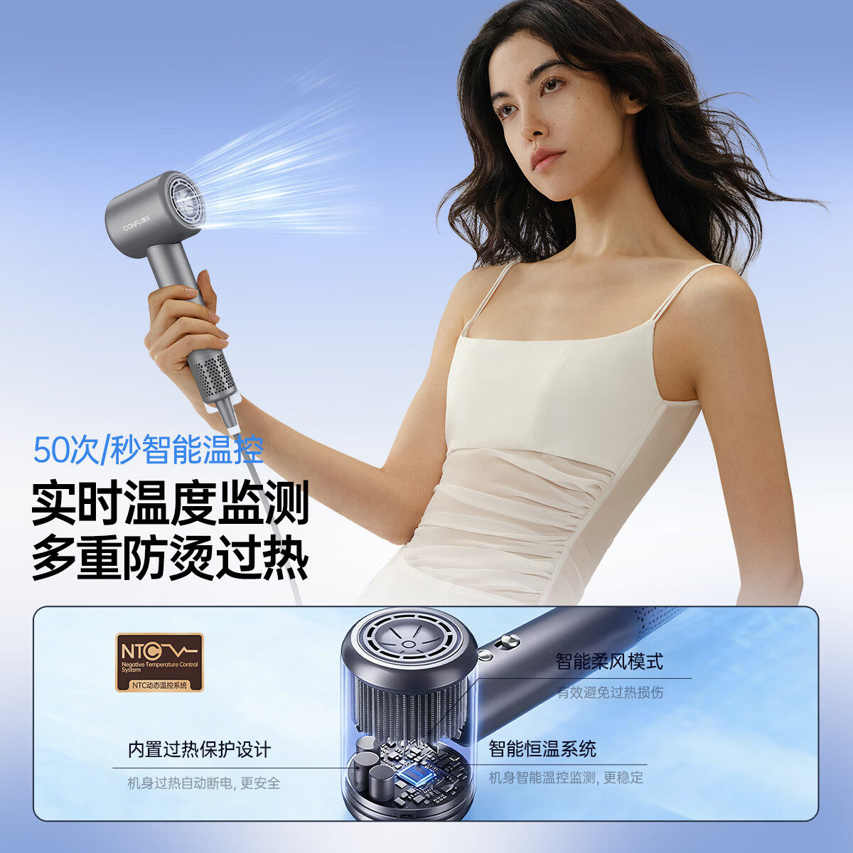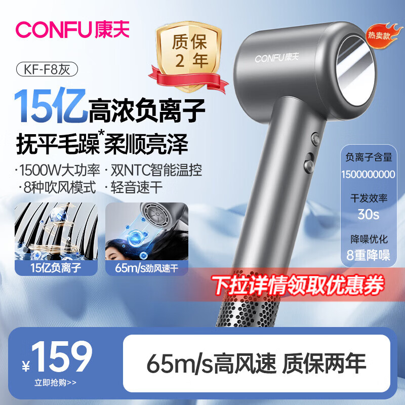 康夫(CONFU)高速电吹风机15亿负离子护发电吹风大功率速干家用大风力不伤发女士吹风筒节日/生日礼物推荐F8灰