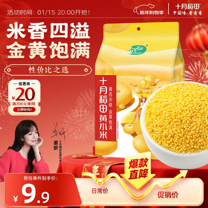 十月稻田 黄小米 2斤 五谷杂粮 低脂粗粮 早餐煮粥 正宗小米饭 米香浓郁