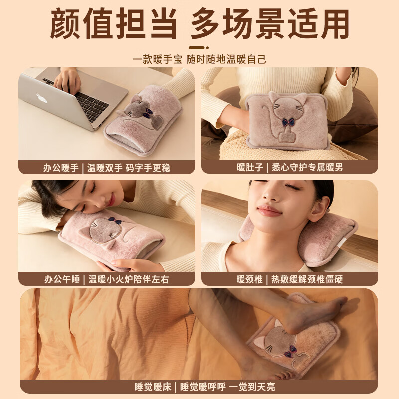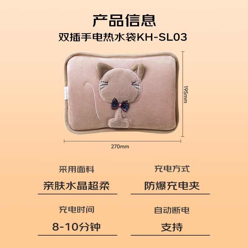 康佳暖手宝充电取暖器 热水袋 暖手袋 暖宝宝 暖水袋 充电防爆多功能 加绒电暖器KH-SL03魅力藕