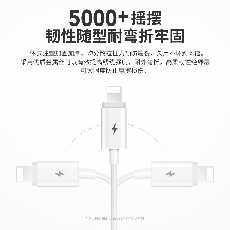 Snowkids苹果数据线iphone14pro max充电线快充/13/12/ipad/11Pro/Xs/XR/X手机平板充电器线USB车载电源线
