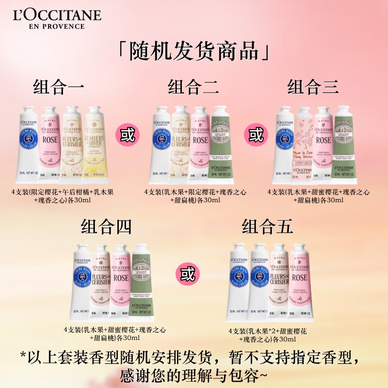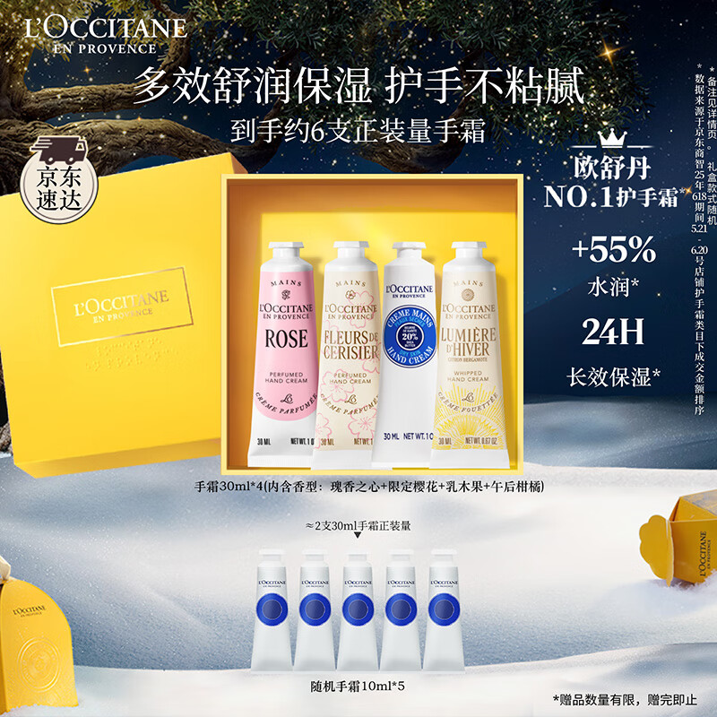 欧舒丹护手霜礼盒限定香氛乳木果4支装保湿滋润留香润肤礼物(香型随机)
